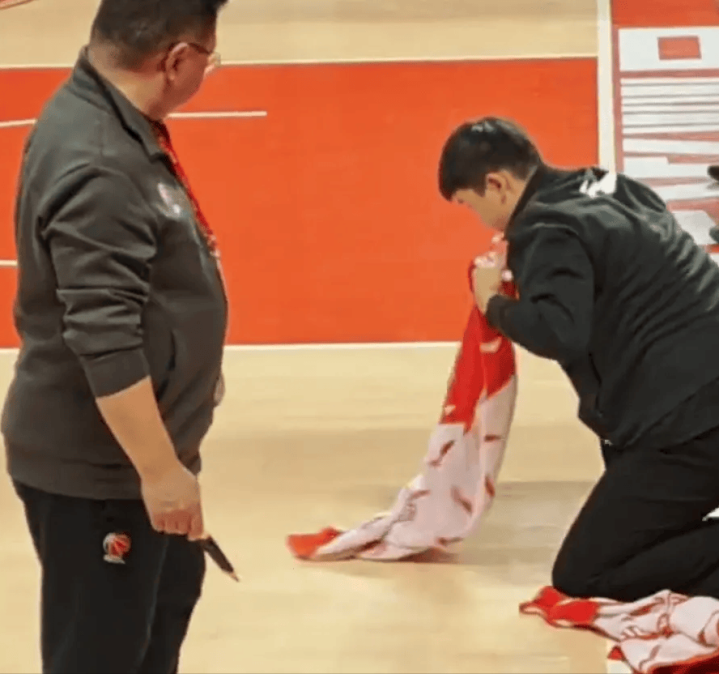 据了解是由于地板渗水,场馆工作人员也是紧锣密鼓的排查问题中,而在长达一个小时的排查过程中,球员等待的着急,球迷等待的无趣。